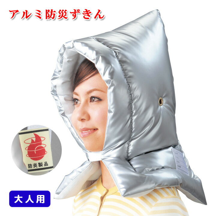 防炎協会認定 アルミ防災ずきん 大人用 防災 備え 防炎 防災グッズ 防災頭巾 頭巾 災害 地震 避難 日本防炎協会 難燃 アルミ ゴム付 クッション 名札 シルバー 日本製 おとな用 頭 守る