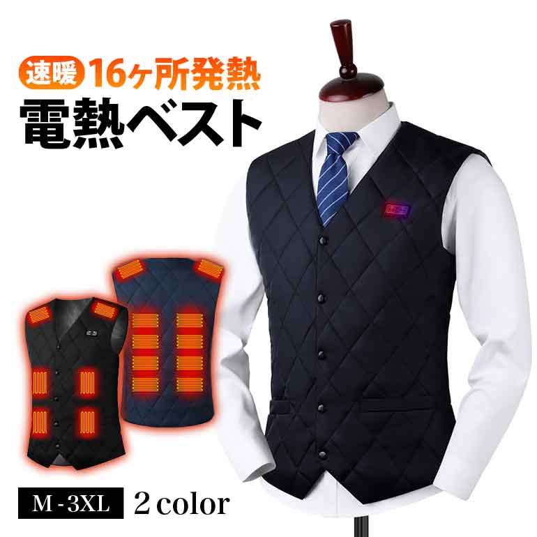 24年新品★電熱ベスト16枚繊維 バッテリー付き 3段温度調整 ヒーターベスト ヒートベスト 温熱ベスト 電熱ジャケット 発熱ベスト USB 電熱ウェア 速暖 前後独立設定 水洗 大きいサイズ レディース メンズ 加熱 ビジネス 30日間保証 加熱服 水洗え 男女兼用 防寒ベスト