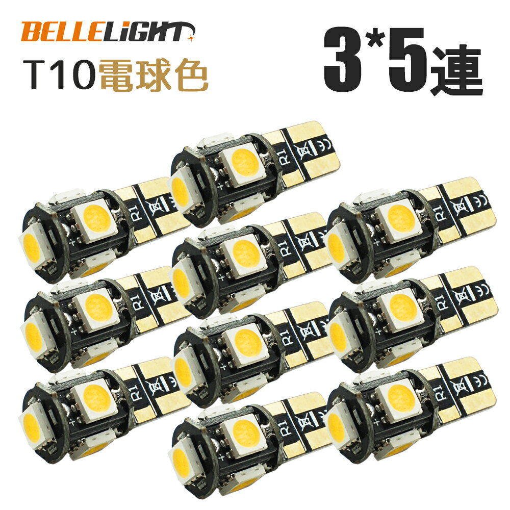 T10 LED 電球色 ポジション ナンバー灯 3チップ5連 10個セット 白 5050チップ ウォームホワイト 暖白色 暖色 12V用 SX012