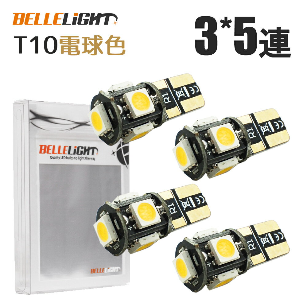 T10 LED 電球色 ポジション ナンバー灯 3チップ5連 4個セット 白 5050チップ ウォームホワイト 暖白色 暖色 12V用 SX012