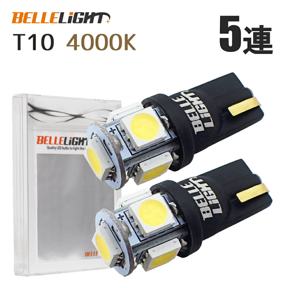 T10 4000K LED 白と電球色の中間色 2個セット ポジション ナンバー灯 ルームランプ 12V用 5連 電球 SX041-40