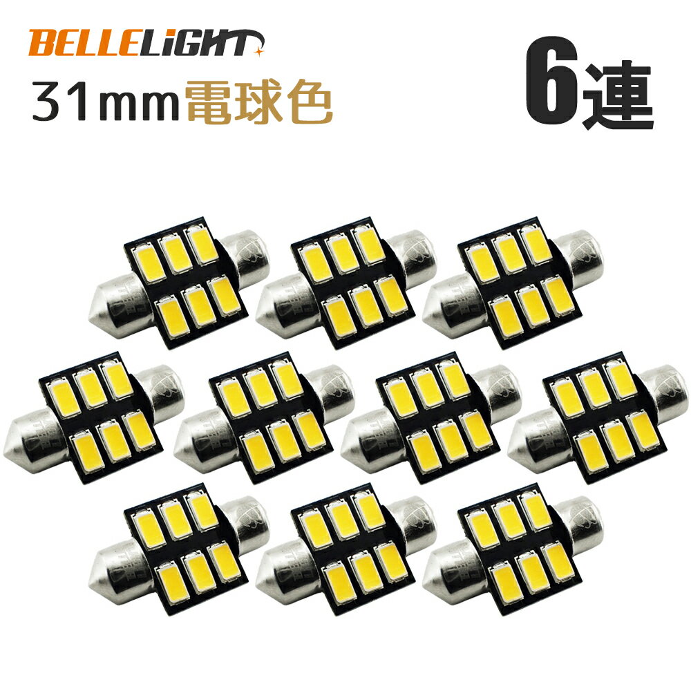 10個セット T10×31mm LED 電球色 ルームランプ球 6連 暖白 ウォームホワイト 5630チップ 暖色 12V LEDバルブ AX032