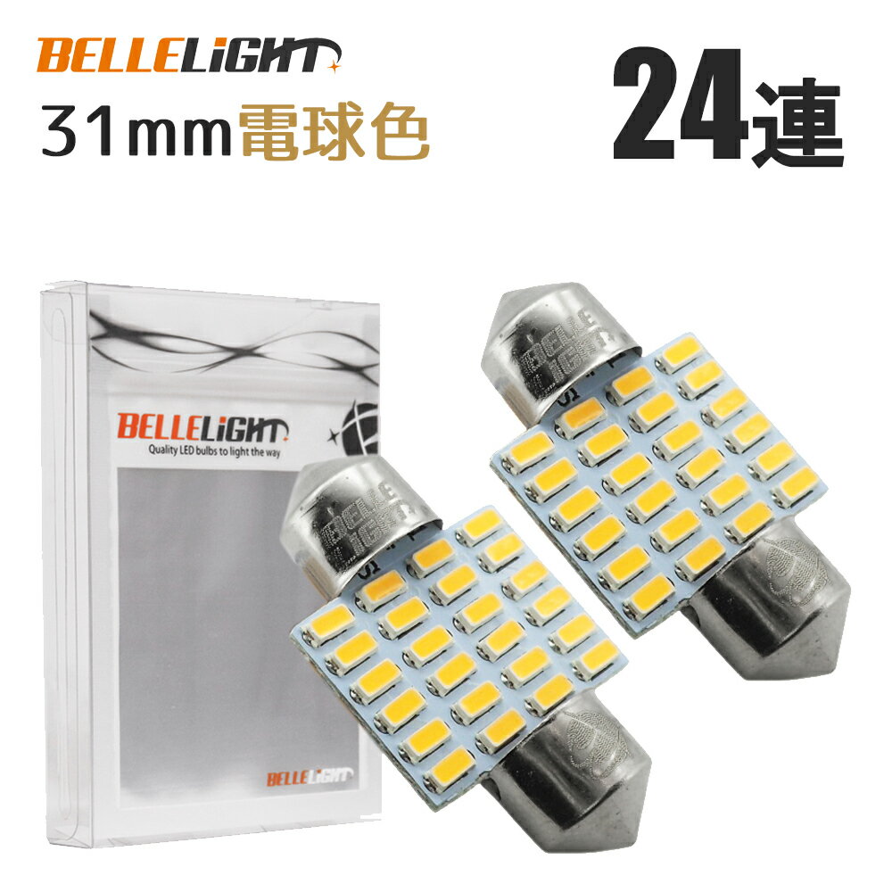 T10×31mm LED 電球色 爆光 24連 無極性 3000K ルームランプ 暖白色 3014チップ 2個セット ホワイト 暖色 12V用LEDバルブ EX082