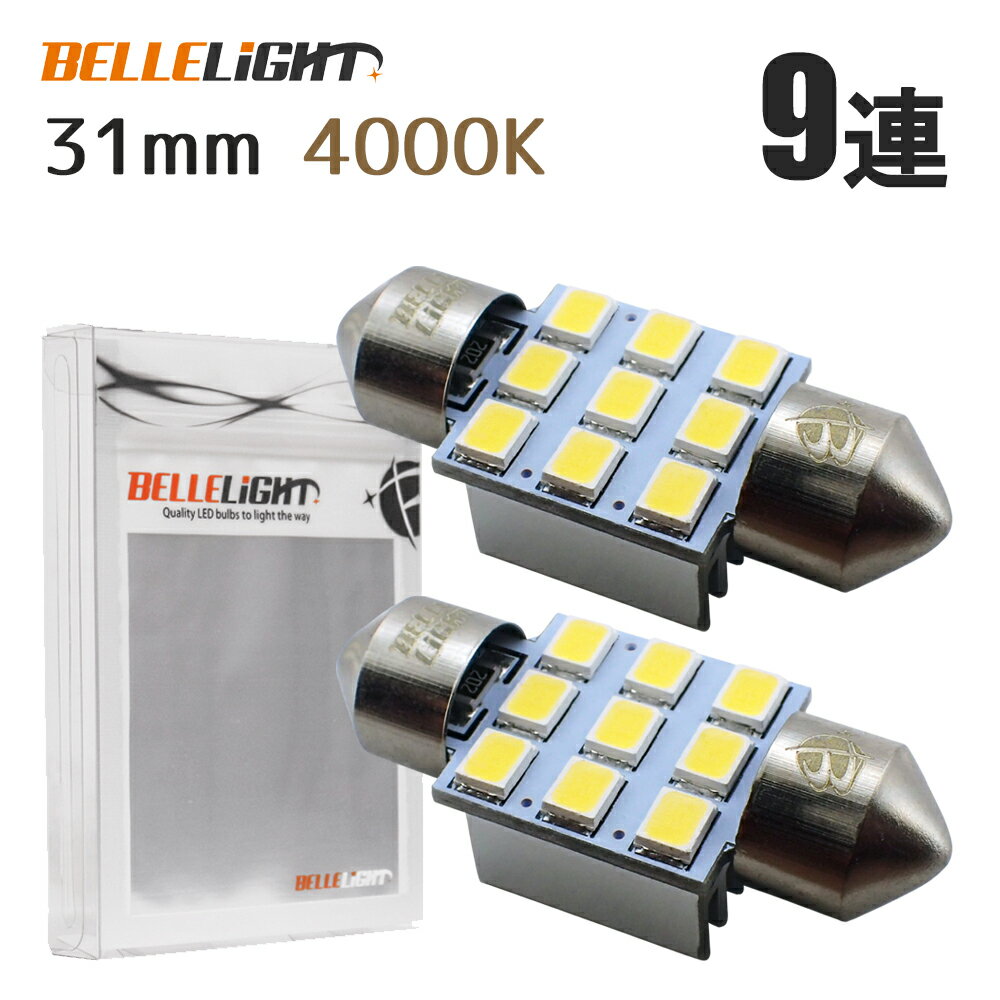 31mm 4000K LED 白と電球色の中間色 2個セット 明るいルームランプ 室内灯 12V用 9連 T10×31 電球 JX051-40