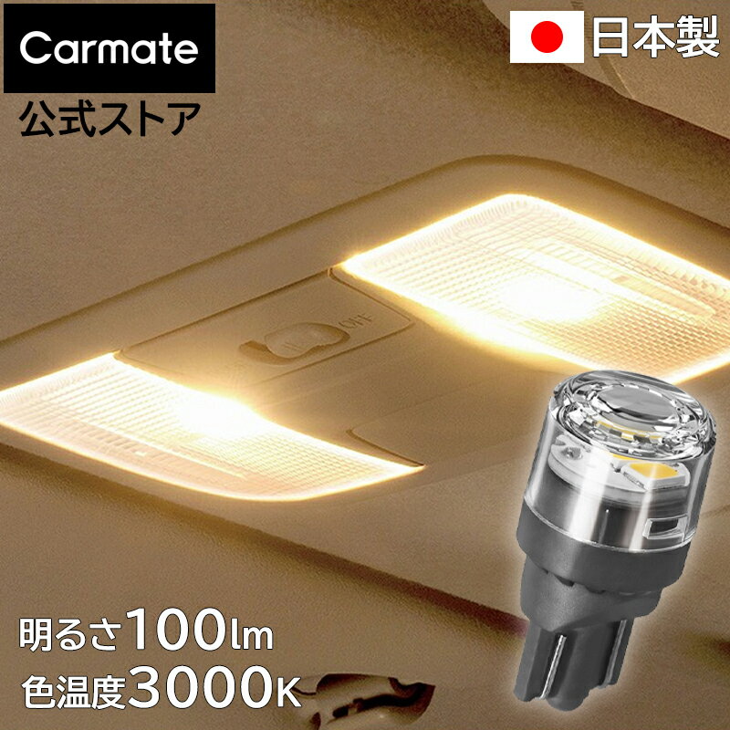 車 LED ルームランプ T10 BW250 GIGA LEDルーム R100T 100lm 3000K 明るい電球色 2個入り 車用 12V 日本製 車検対応 ルームライト carmate