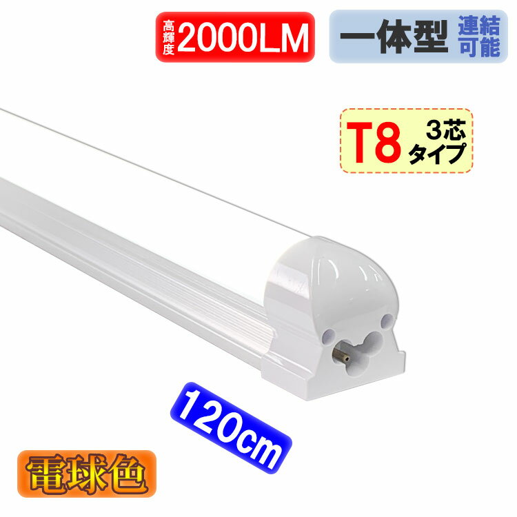 led蛍光灯 40w形 器具一体型 2000LM LEDベースライト 直管 120cm 電球色 [TUBE-120-it-Y]
