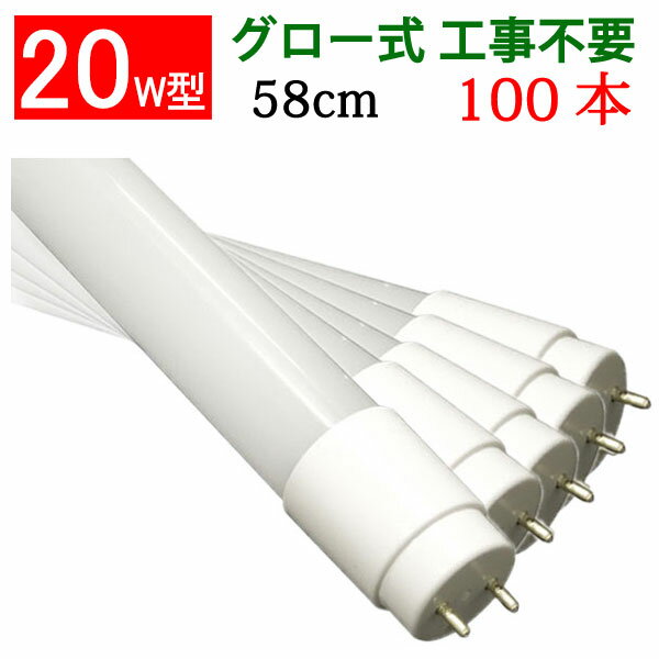 led蛍光灯 20w形 100本セット グロー式工事不要 広角300度照射 直管 58cm 昼光色 昼白色 白色 電球色 色選択 [60PB-X-100set]