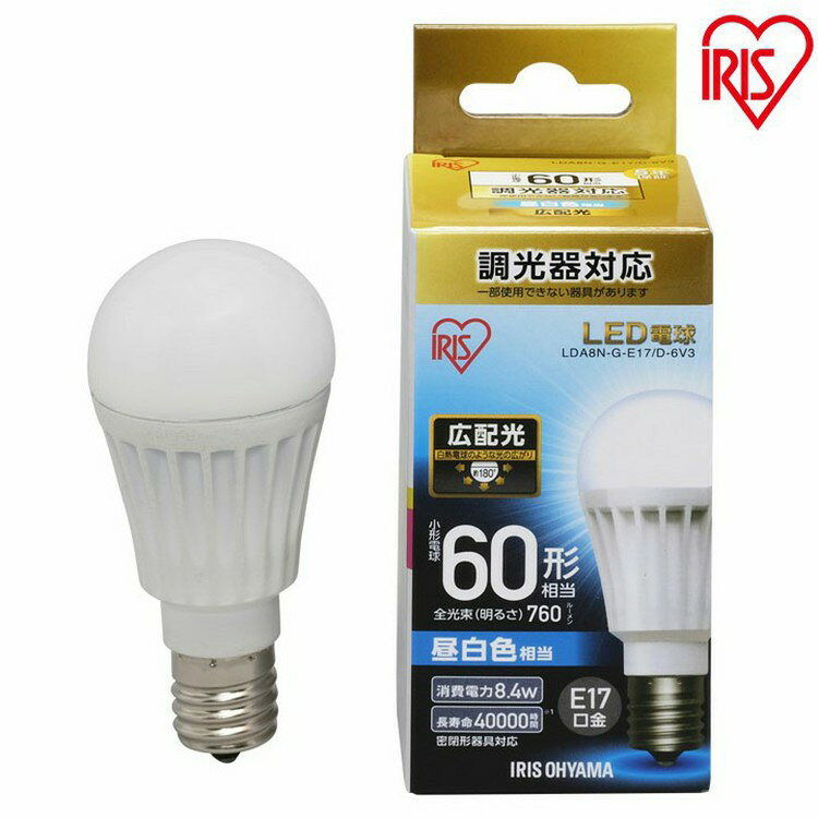 【10個セット】電球 LED電球 E17 60W 調光器対応 電球色 昼白色 アイリスオーヤマ 広配光 LDA8N-G-E17/D-6V3・LDA9L-G-E17/D-6V3 密閉形器具対応 電球のみ おしゃれ 電球 17口金 60W形相当 長寿命 省エネ 玄関 廊下 パック
