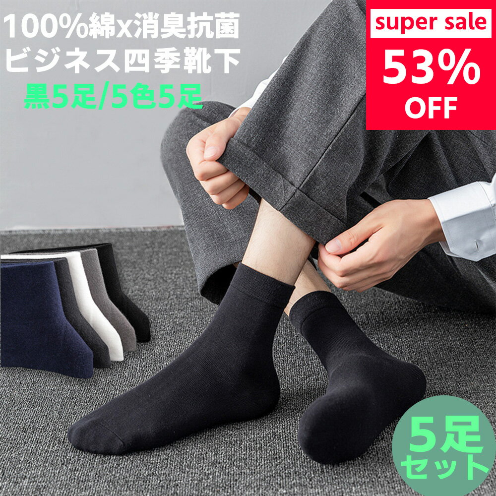 高評価4.76!100%綿 ミドル丈 メンズビジネス靴下 買得!5足セット 【黒5足組・5色5足組】春夏秋冬用 四季靴下 消臭抗菌 25-28cm ソックス くつした ブラック 黒 防臭 カジュアル くつ下 ブランド 通勤通学 ビジネス 送料無料