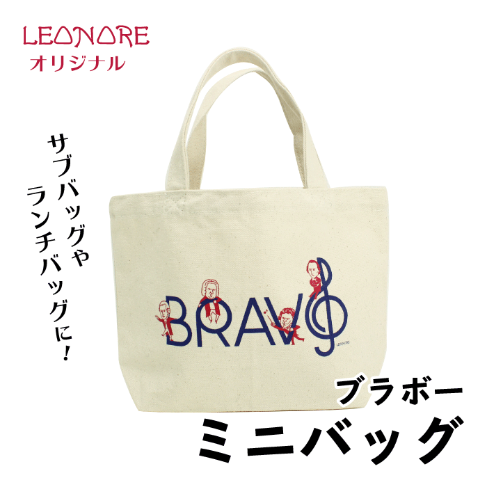レオノーレオリジナル商品 頑張っている自分に「BRAVO♪」を! 偉大な音楽家が「BRAVO♪」と言っている表情が、ぷっと笑えて幸せな気分になると大人気のブラボーシリーズにミニバッグが登場!裏側にはバックショットも! 愛嬌のある作曲家たちと楽しくお出掛け♪ サブバッグやランチバッグとしてお使いいただけます! ●サイズ: H20×W30×D10cm 持ち手2.5×29cm ●材質:綿100% ●日本製 ●JAN:4589946373400
