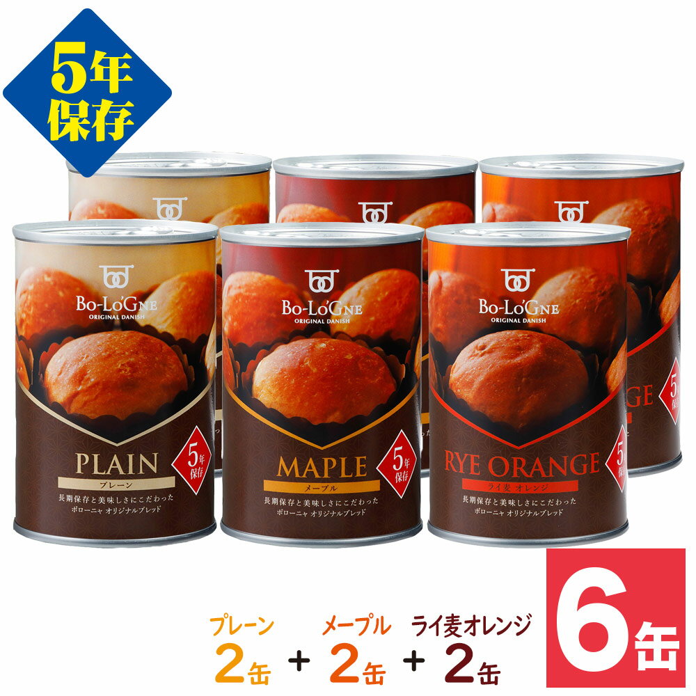 非常食 パン 備蓄deボローニャ パンの缶詰 5年保存×6缶 ブリオッシュパン 保存食 災害食 防災食 防災グッズ 備蓄 食料 防災用品 非常食セット プレーン メープル ライ麦オレンジ