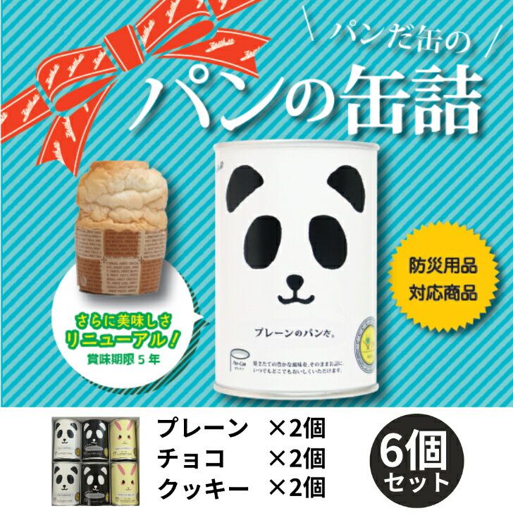 パンダ缶 プレーン味パン3缶+チョコ味パン3缶 缶詰 6缶セット パンだ缶 特定原材料7品目不使用 非常食 パン 缶詰 防災 長期保存 ギフト ハラール認証 チョコチップ ハラール認証 パンダ