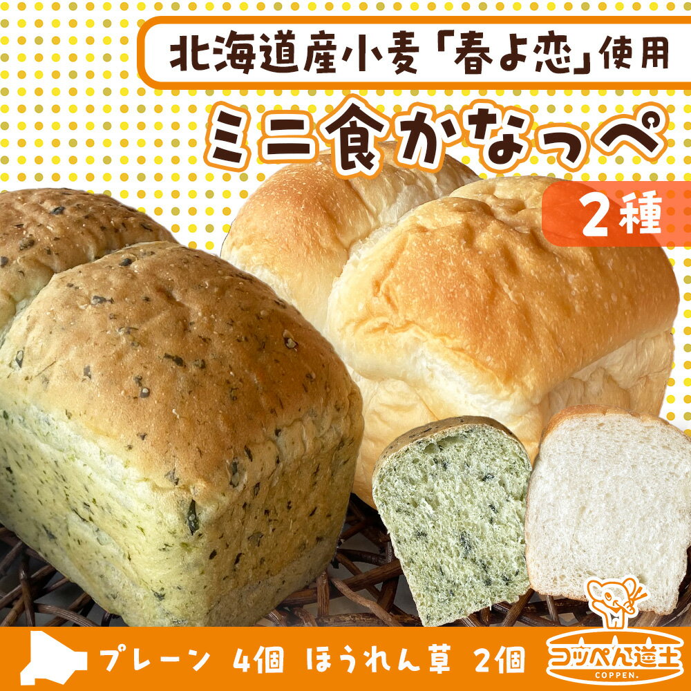 【ふるさと納税】北海道 ミニ食かなっぺ 2種 セット プレーン 4個 ほうれん草 2個 北海道産 小麦 春よ恋 食パン パン トースト カナッペ 手作り 自家製 焼きたて 酵母 ベーカリー 朝食 手軽 冷凍 お取り寄せ 人気 自家用 ギフト 送料無料 木古内 木古内町