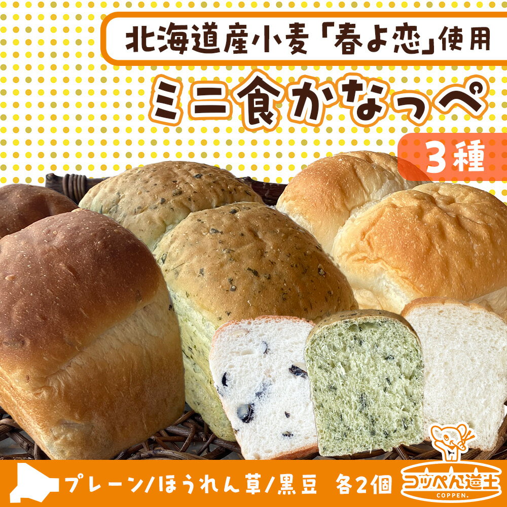 【ふるさと納税】ミニ食かなっぺ3種セット【プレーン2個/ほうれん草2個/黒豆2個 計6個】北海道産 小麦 春よ恋 食パン パン トースト カナッペ 手作り 自家製 焼きたて 酵母 ベーカリー 朝食 手軽 冷凍 お取り寄せ 人気 自家用 ギフト 送料無料 木古内 木古内町