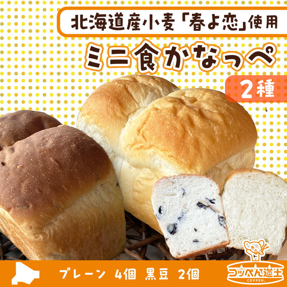 【ふるさと納税】ミニ食かなっぺ2種セット【プレーン4個/黒豆2個 計6個】北海道産 小麦 春よ恋 食パン パン トースト カナッペ 手作り 自家製 焼きたて 酵母 ベーカリー 朝食 手軽 冷凍 お取り寄せ 人気 自家用 ギフト 送料無料 木古内 木古内町