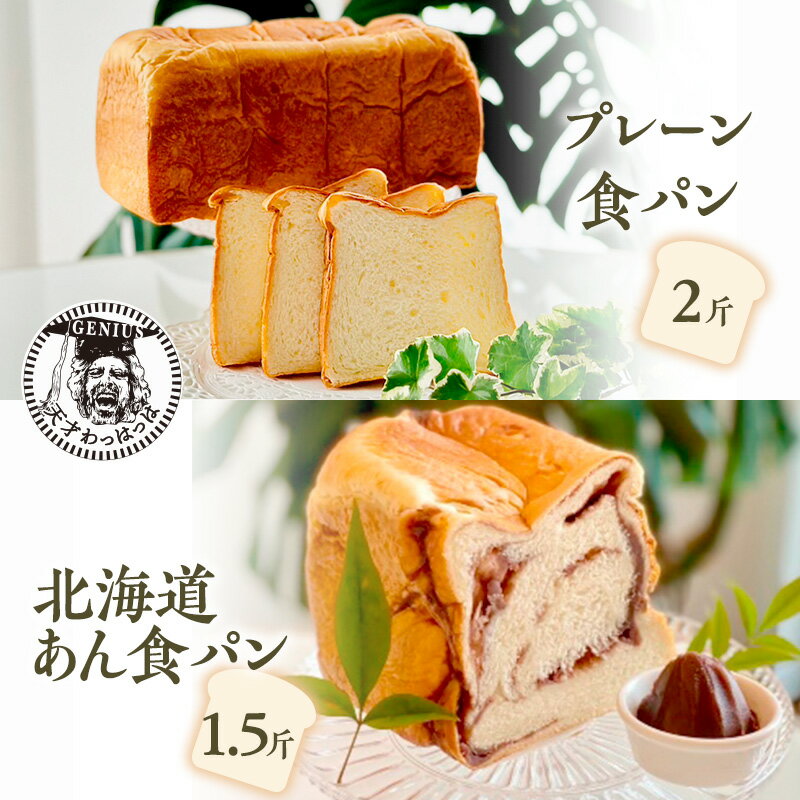 【ふるさと納税】 プレーン 食パン 2斤 & 北海道 あん 食パン 1.5斤 パン ぱん 食パン ブレッド おいしい 朝食 朝ごはん 朝 数量限定 訳あり ふるさと納税 ふるさと 人気 おすすめ 送料無料 兵庫県 三田市[ 3d28bae530015 ]