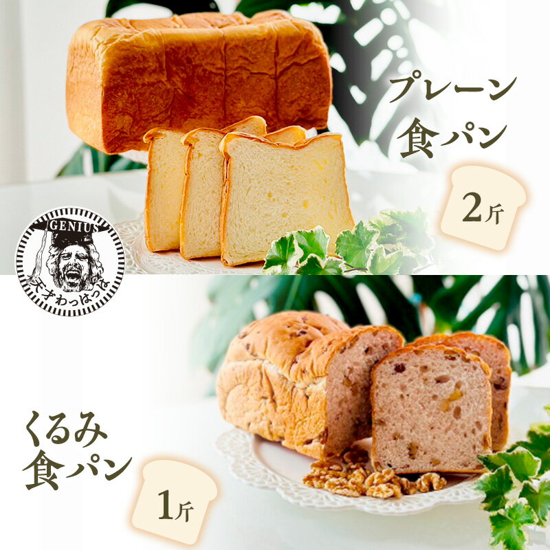 【ふるさと納税】 プレーン 食パン 2斤 & くるみ 食パン 1斤 パン ぱん 食パン ブレッド おいしい 朝食 朝ごはん 朝 数量限定 訳あり ふるさと納税 ふるさと 人気 おすすめ 送料無料 兵庫県 三田市[ 3d28bae530020 ]