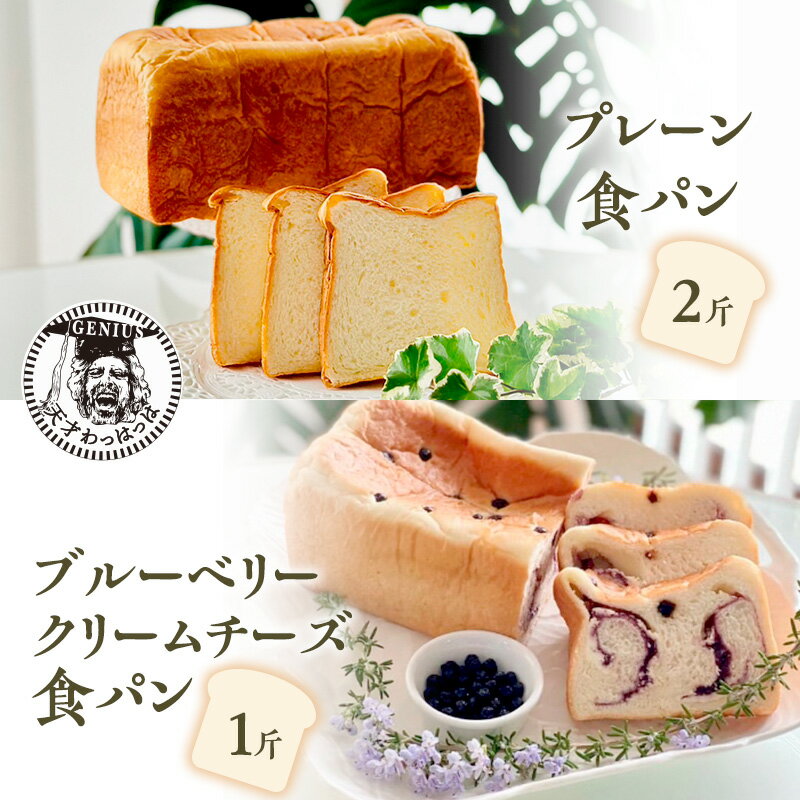【ふるさと納税】 プレーン 食パン 2斤 & ブルーベリー クリームチーズ 食パン 1斤 パン ぱん 食パン ブレッド おいしい 朝食 朝ごはん 朝 数量限定 訳あり ふるさと納税 ふるさと 人気 おすすめ 送料無料 兵庫県 三田市[ 3d28bae530021 ]