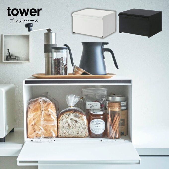 tower ブレッドケース タワー オマケ付き /ブレッドケース タワー 山崎実業 パンケース 調味料ボックス パン収納 パンケース 棚 収納 スパイスラック 調味料ラック ホワイト ブラック おしゃれ シンプル キッチン収納 白 黒 キッチン Yamazaki