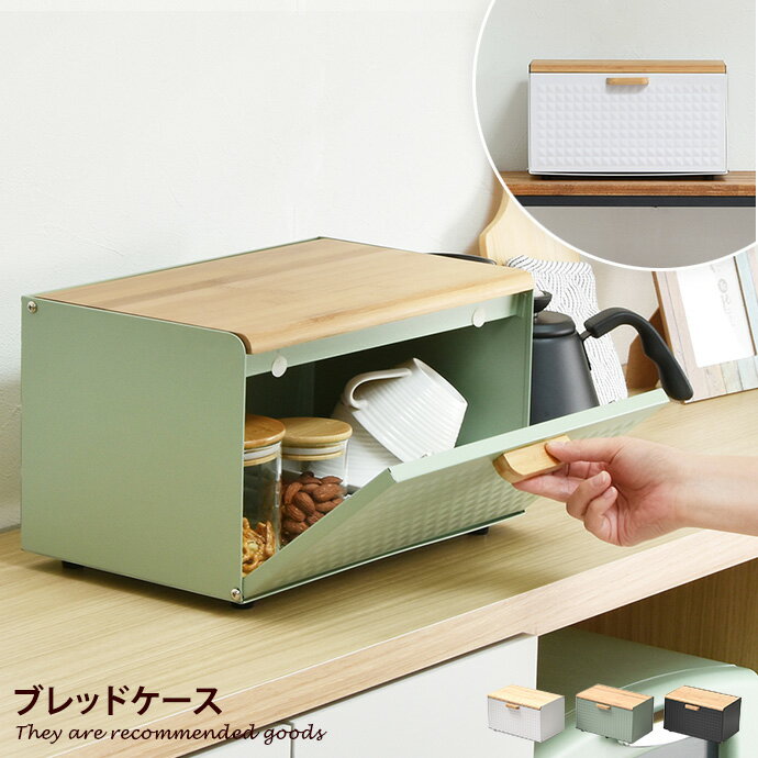 ブレッドケース おしゃれ 北欧 かわいい パンケース 上開き 前開き キッチン収納 収納 パン入れ 食パン 調味料入れ 整理ボックス マグネット 収納ボックス コンパクト トースターラック シンプル ストッカー 保存 ナチュラル wave 白 黒 緑