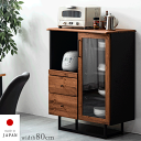 【20時~クーポン5%引】 国産 食器棚 完成品 80幅 キッチン収納 日本製 レンジ台 キッチン収納棚 収納 棚 キッチン レンジ キッチンラック ボード おしゃれ 引き戸 スライド ロータイプ 引出し 80cm キッチンカウンター 大容量 カップボード 【超大型】