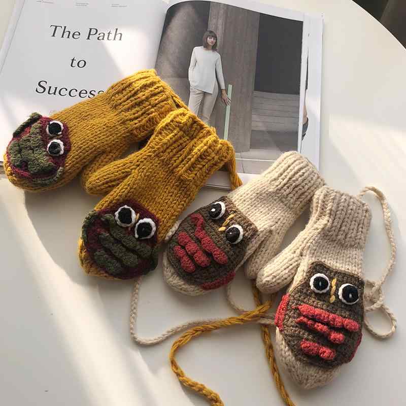 手袋 指なし ミトン レディース 暖かい 冬 柔らかい ふわふわ 厚手 裏ボア 紐付き 首掛け 防寒 保温 通学 アウトドア かわいい 犬 カエル クマ