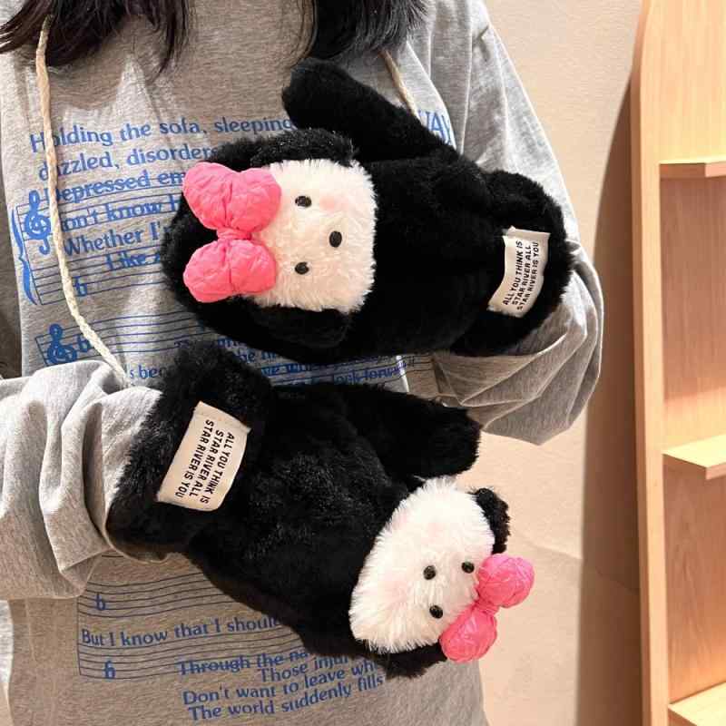 手袋 レディース かわいい 小犬 刺繍 蝶結び 首掛け式 手袋 秋冬 学生 アウトドア 自転車 バイク 防寒 暖かい 裏起毛