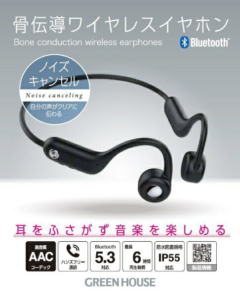 GREEN HOUSE|グリーンハウス ブルートゥースイヤホン 耳かけ型 GH-BCANC-BK [ノイズキャンセリング対応 /骨伝導 /Bluetooth対応]