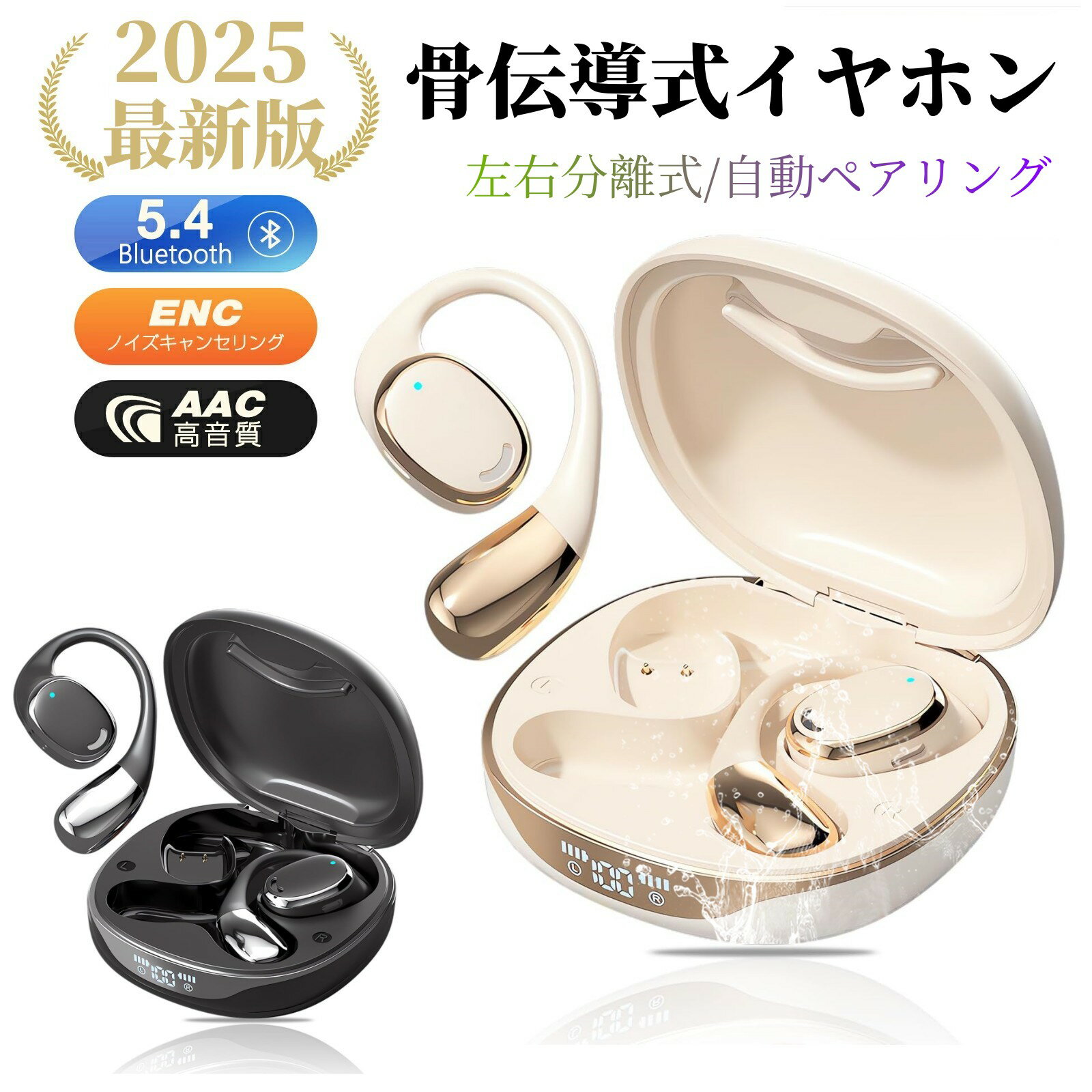 「クーポンで3980円」イヤホン 骨伝導式イヤホン ワイヤレスイヤホン Bluetooth5.4 低遅延 耳挟み式 オープンイヤー 耳掛け 耳を塞がない マイク付き ENC通話 ノイズキャンセリング 超軽量 Hi-Fi高音質 数字LED ディスプレイ残量表示