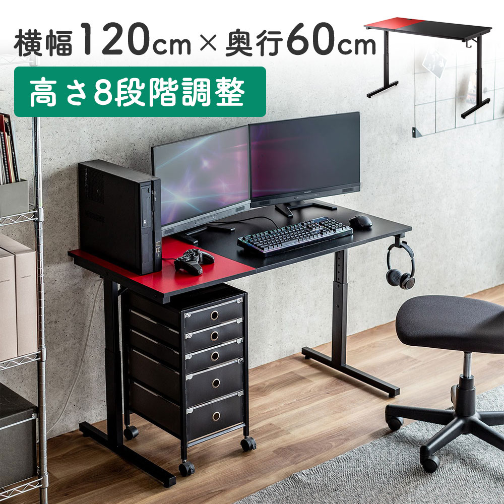 シンプルデスク ツートンデスク 幅120cm 奥行60cm 8段階高さ変更可能 高さ57〜78cm クランプ対応 アジャスタ 平机 ブラック レッド EZ1-DESKF050BK1