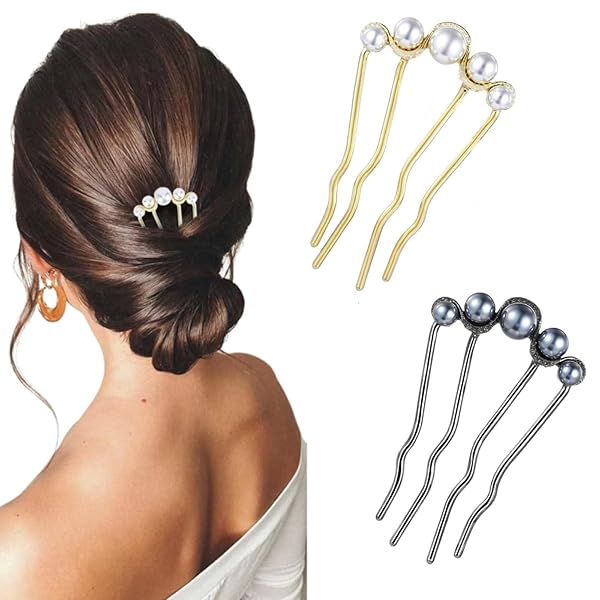 YFFSFDC 夜会巻きコーム【2本セット】 パール ヘアコーム お団子 髪飾り 髪ピン 簡単 まとめ髪 ヘアアレンジ パーティー 成人式 入学式 卒業式 結婚式 宴会 ゴールドとブラック