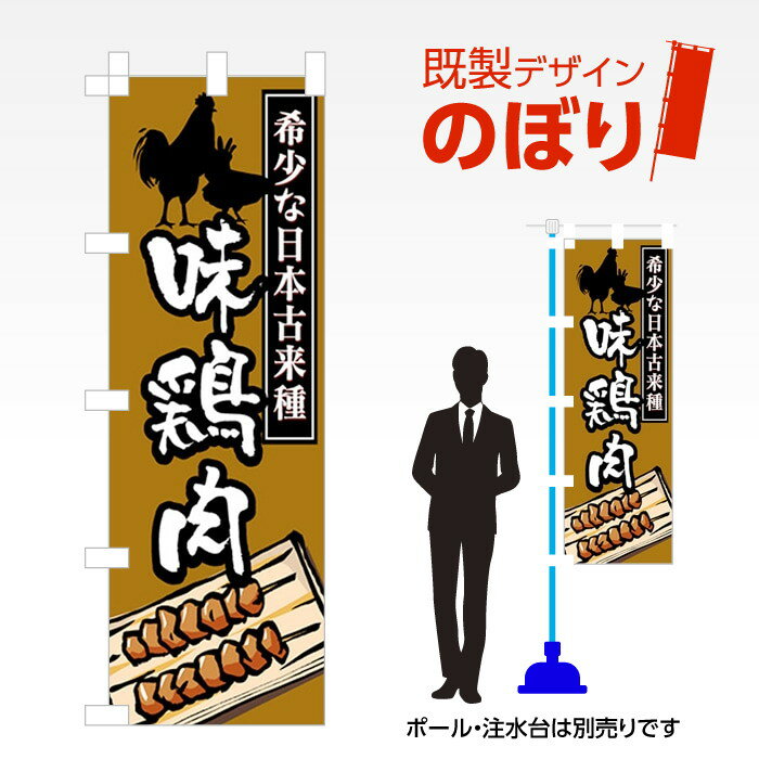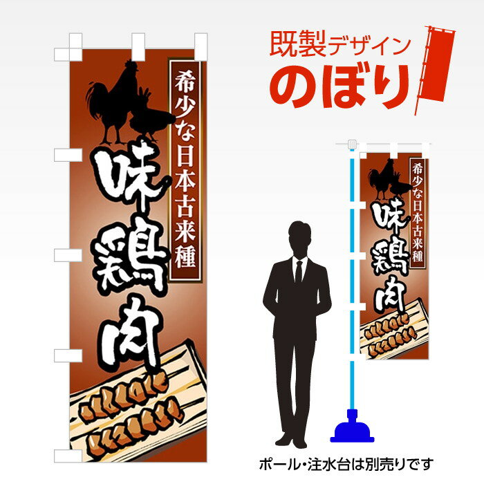既製デザインのぼり旗 味鶏肉 W600mm×H1,800mm AM-F-2369 デザイン不要 すぐ使える 600×1800 イベント 人気 店頭 店舗 アピール 目立つ きれい 印刷 集客