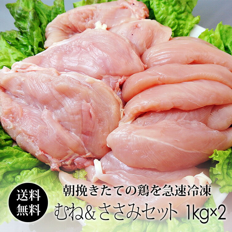 鶏肉 紀の国みかんどり 2kgセット (むね肉&ささみ) 各1kg (冷凍) 国産 和歌山県産 ムネ肉 ササミ みかん鶏 【送料無料】