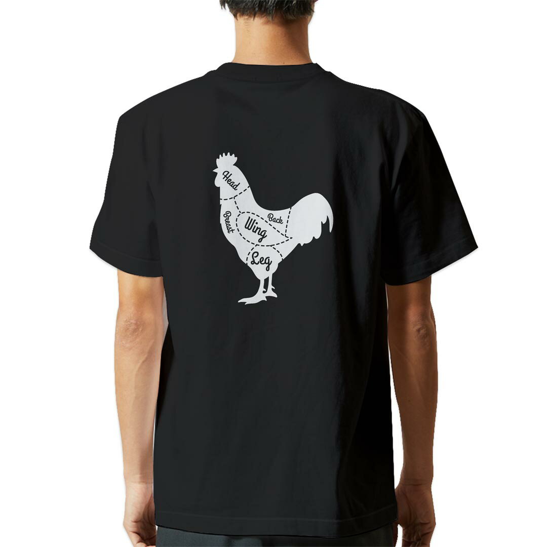 tシャツ メンズ 半袖 バックプリント ブラック デザイン XS S M L XL 2XL ティーシャツ T shirt 031918 鶏 肉 部位