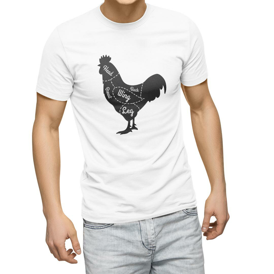 Tシャツ メンズ 半袖 ホワイト グレー デザイン S M L XL 2XL Tシャツ ティーシャツ T shirt 031918 鶏 肉 部位