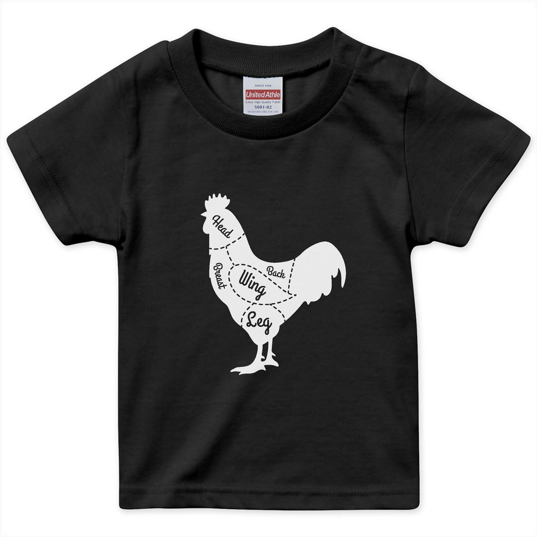 tシャツ キッズ 半袖 黒地 ブラック デザイン 90 100 110 120 130 140 150 160 Tシャツ ティーシャツ T shirt 031918 鶏 肉 部位