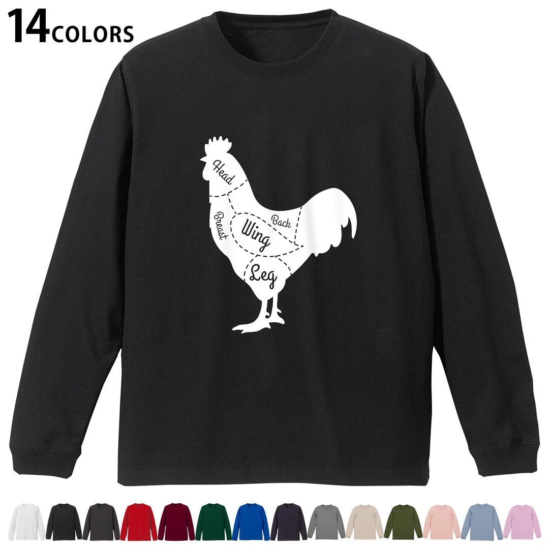選べる14カラー バックプリント メンズ レディース ユニセックス unisex 長袖 デザイン XS S M L XL 2XL Tシャツ ロング ティーシャツ T shirt 031918 鶏 肉 部位