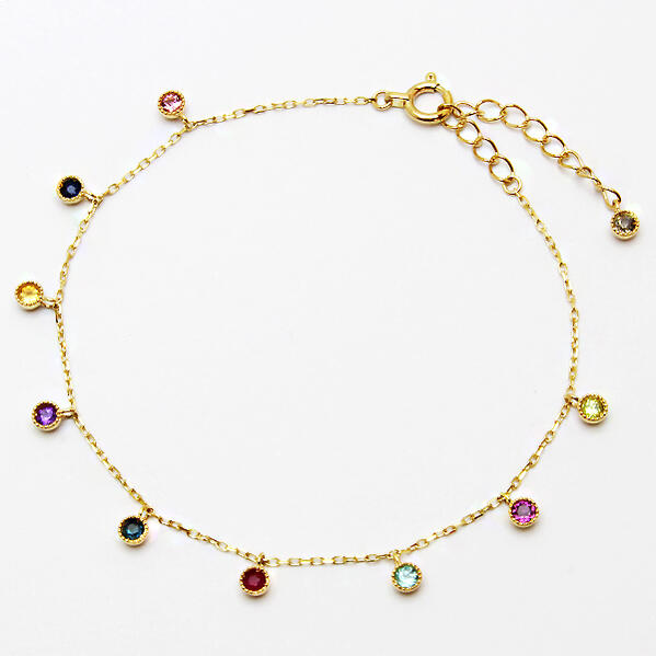 ブレスレット ブレスレット 10色の天然石が虹色に輝く…!お守りに♪フルーツタルトが並んでいるみたい★アミュレットブレスレット☆K10イエローゴールド.ロードライトガーネット,ペリドット,ロンドンブルートパーズ,サファイア 10k シンプル チェーン かわいい