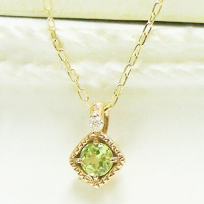 ネックレス ネックレス 誕生石をお守りに。8月のストーン ペリドット をダイヤモンドが見守る、シンプルネックレス・K10イエローゴールド 8月の誕生石 シンプル 10K 10金 YG ミル打ち 一粒 おしゃれ アクセサリー プレゼント