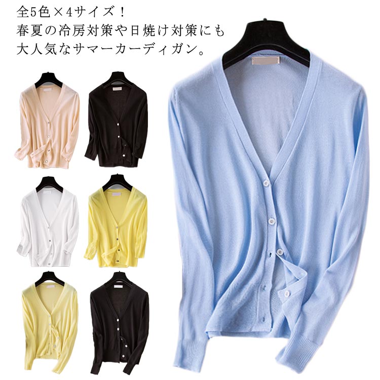 THOM WILLS 全5色×4サイズ!サマーカーディガン ニットソー素材 カーディガン サマー 長袖 7分袖 シンプル 無地 Vネック 日焼け防止 冷房対策 羽織 春夏 薄手 レディース おしゃれ 送料無料