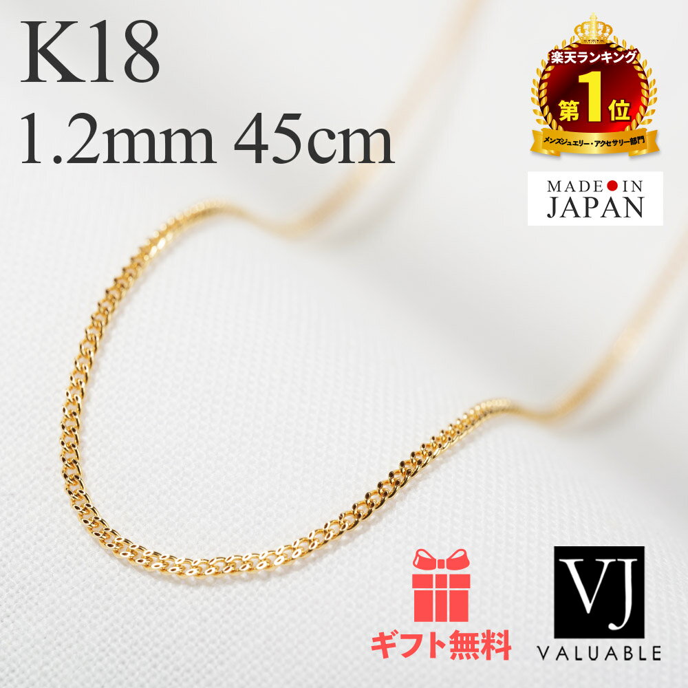18金 ネックレス 喜平 チェーン 18k メンズ レディース イエローゴールド 「 Skinny Clark キヘイ チェーン 」 1.2mm幅 45cm(アジャスターで42cm)[ k18 アメリカ ハワイアン ジュエリー シンプル 1g 人気 男性 女性 きへい 男女兼用 定番 細い 1mm ] あす楽