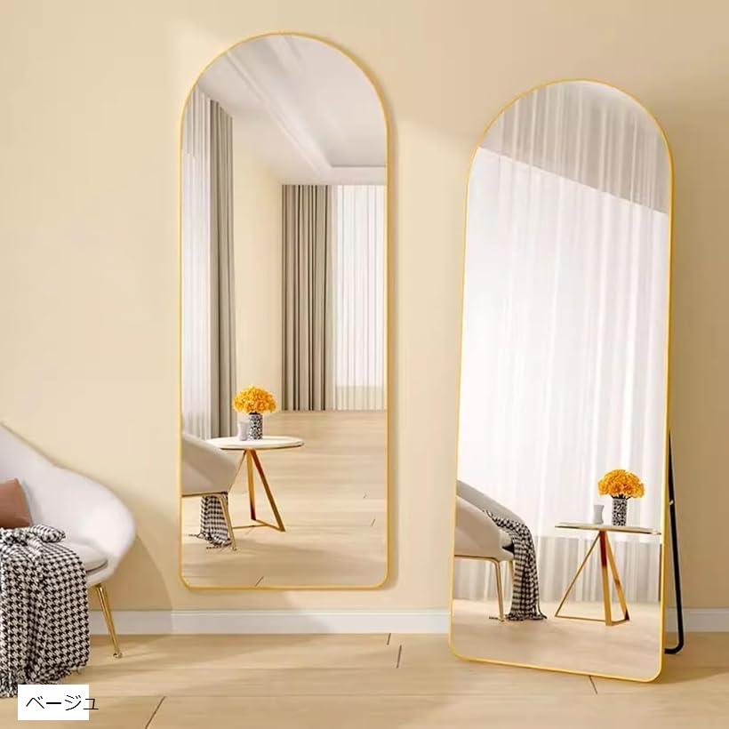 「商品仕様」鏡のサイズ: 幅40cmx高さ150cm、重量: 約5.5kg、フレームカラー: ベージュ/ホワイト/ブラック「全身鏡」全身を映してくれるので、お出かけ前の身だしなみチェックにとても便利です。また、大きな全身の姿見鏡があるとお部屋が広く見せる効果や、鏡の向こう側にも空間があるように錯覚させる効果がありインテリアの重要なアイテムとしても活躍します。筋トレ、ダンス、ヨガ等のフォームチェックにも使用して頂き人気があります「壁掛け&スタンドの2WAYデザイン」壁掛け式、壁に掛けてスペースを節約、安全、永久的、地震の際にも倒壊の心配がありません。スタンド式、賃貸住宅が壁に穴を開けたくない人は立てて使えます。「飛散防止加工」万が一割ってしまっても飛び散りにくい加工しております。フレーム角を丸く仕上げ、安全性やインテリア性も抜群です。リビング、寝室、和室、洋室、店舗用などどこでもお使い頂けるおしゃれな全身ミラーです。「コンパクト収納」簡単な設置でスペースを節約。フロアスタンド、壁掛け、さらには傾けることもできます。簡単に操作できるので、時間や労力を気にする必要はありません。省スペースで収納できるので、部屋のレイアウトに合わせて自由に移動できます。※ 他ネットショップでも併売しているため、ご注文後に在庫切れとなる場合があります。予めご了承ください。※ 品薄または希少等の理由により、参考価格よりも高い価格で販売されている場合があります。ご注文の際には必ず販売価格をご確認ください。※ 沖縄県、離島または一部地域の場合、別途送料の負担をお願いする場合があります。予めご了承ください。※ お使いのモニタにより写真の色が実際の商品の色と異なる場合や、イメージに差異が生じることがあります。予めご了承ください。※ 商品の詳細(カラー・数量・サイズ 等)については、ページ内の商品説明をご確認のうえ、ご注文ください。※ モバイル版・スマホ版ページでは、お使いの端末によっては一部の情報が表示されないことがあります。すべての記載情報をご確認するには、PC版ページをご覧ください。-商品仕様 サイズ: 幅40cmx高さ150cm 重量: 約5.5kg フレームカラー: ベージュ/ホワイト/ブラック *壁掛け、スタンドの2WAYスタイルとなっており、使わないときには折り畳むことができます。軽いので女性一人でもお部屋からお部屋への移動がラクラクと持ち運ぶことができます。*アーチ形を丸く仕上げた緩やかな柔らかい曲線が美しく、個性的で優しいおしゃれな空間を作ります。北欧らしい優しさと上品さを醸し出します。*全身ミラー.全身を映してくれるので、お出かけ前の身だしなみチェックにとても便利です。*また、大きな全身の姿見鏡があるとお部屋が広く見せる効果や、鏡の向こう側にも空間があるように錯覚させる効果がありインテリアの重要なアイテムとしても活躍します。*玄関先に置いて外出前の服装や身だしなみをチェックしたり、ダイエット中のスタイルチェックなどをする為にも役立ち、一つは持っておきたいアイテムです