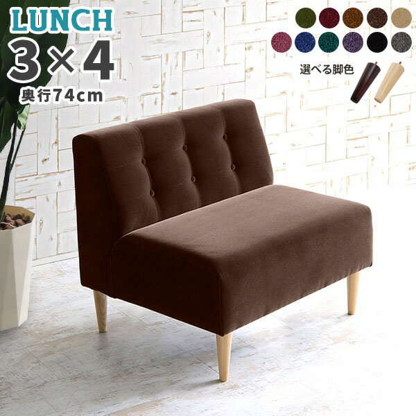 Lunch 3×4 D74 モケット生地サイズ約幅890 奥行き740 高さ790 mm座面高さ:450 mm脚の高さ:200 mm梱包サイズ:幅950 奥行き770 高さ650 mm材質[本体]ウレタンフォーム[脚]天然杢[張地]アクリル100%(モケット生地)カラーグリーン/パープルピンク/ダークレッド/ゴールドベージュ/ディープブラウン/ベージュ/ブルー/ブルーグリーン/パンジー/ブラック/シルバーグレーからお選び下さい。※モニターなどの閲覧環境によって、実際の色と異なって見える場合がございます。仕様日本製完成品(脚のみお客様取り付け)ローソファとしても使えるアジャスター付属カバー取外し不可脚:4本ブランド 送料送料無料※離島は送料別途お見積もり。納期ご注文状況により納期に変動がございます。最新の納期情報はカラー選択時にご確認ください。※オーダー商品につき、ご注文のキャンセル・変更につきましてはお届け前でありましても生産手配が済んでいるためキャンセル料(商品代金の50%)を頂戴いたします。※商品到着までの日数は、地域により異なりますご購入時にお届け日の指定がない場合、最短日での出荷手配を行いメールにてご連絡させていただきます。配送・開梱設置について※離島は送料別途お見積もりいたしましてご連絡いたします。【ご注意ください】離島・郡部など一部配送不可地域がございます。配送不可地域の場合は、通常の配送便での玄関渡しとなります。運送業者の便の都合上、地域によってはご希望の日時指定がお受けできない場合がございます。建物の形態(エレベーターの無い3階以上など)によっては別途追加料金を頂戴する場合がございます。吊り上げ作業などが必要な場合につきましても追加料金はお客様ご負担です。サイズの確認不十分などの理由による返品・返金はお受けできません。※ご注文前に商品のサイズと、搬入経路の幅・高さ・戸口サイズなど充分にご確認願います。備考※製造上の都合や商品の改良のため、予告なく仕様変更する場合がございますので予めご了承ください。当店オリジナル家具を全部見る管理番号0000ae017395/0000ae017396/0000ae017397/0000ae017398/0000ae017399/0000ae017400/0000ae017401/0000ae017402/0000ae017403/0000ae017404/0000ae017405/メーカー希望小売価格はメーカーカタログに基づいて掲載しています■おすすめラインナップこのページは Lunch 3×4 D74 モケット生地のページです。ボタンとステッチからなる背もたれのデザインは、シンプルながらおしゃれな印象を感じさせます。落ち着きのある仕上がりで、モダンやナチュラル、北欧テイストはもちろんレトロな雰囲気にも馴染み置き場所を選びません。肘のないアームレスソファ。スッキリとして圧迫感をやわらげるので、空間の限られるコンパクトな部屋やワンルーム、部屋を広々と見せたい場合などにおすすめです。ダイニングテーブルと合わせた際にも、横から座りやすく日常の小さなストレス軽減にも◎。座面の奥行は余裕をもってくつろげる53cm。横になったりあぐらをかいたり、姿勢を変えながらゆったりできる座面の広いタイプです。※中のクッションのふくらみにより表記サイズに多少の誤差がございます。ソファには2種類の脚が付属しています。ロースタイルで床に近いゆったりとした生活におすすめなアジャスター脚タイプ。そして木製脚は長さ20cm。カラーは[ナチュラル]と[ダークブラウン]の2色をご用意しました。お部屋の雰囲気に合わせてお好みの脚色をお選びください。基本の8型、奥行2型の全部で16型をご用意しました。展開が多いので単体でも組合せでも生活スタイルに合わせて丁度良い大きさが見つけられます。