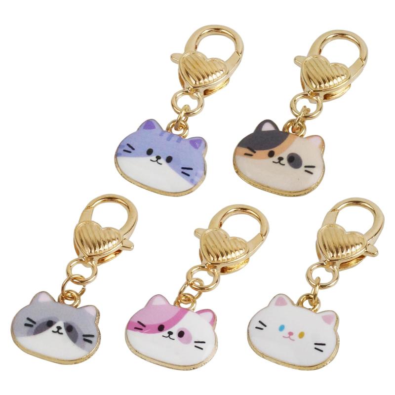[KOYOKOMA] 5個セット 各種1個入 キーホルダー 猫 チャーム 顔 かわいい 小さい カラビナ付き フック ネコ ハチワレ 三毛猫 キジネコ 白猫