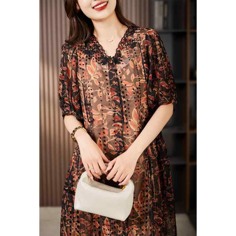 ・カラー展開: レッド、グリーン、パープル・サイズ展開: XL、2XL、3XL、4XL、5XL・主な素材: ポリエステル・スタイル: カジュアル・柄: 植物花柄・特徴: ポケット・着丈: 普通丈 (50~65cm)・加工: ビーズ装飾