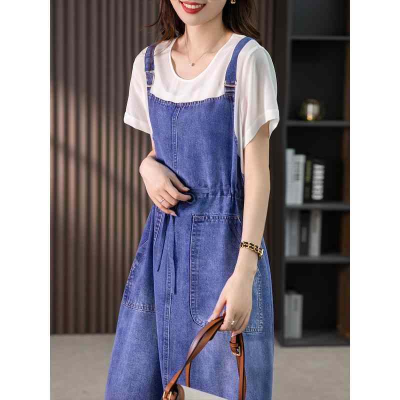 レディース ファッション 服 オシャレ カワイイ 女性用 シンプル 大人カワイイ ヘビー ドレス 夏 ミドル丈 デニム プリント スカート ハイエンド
