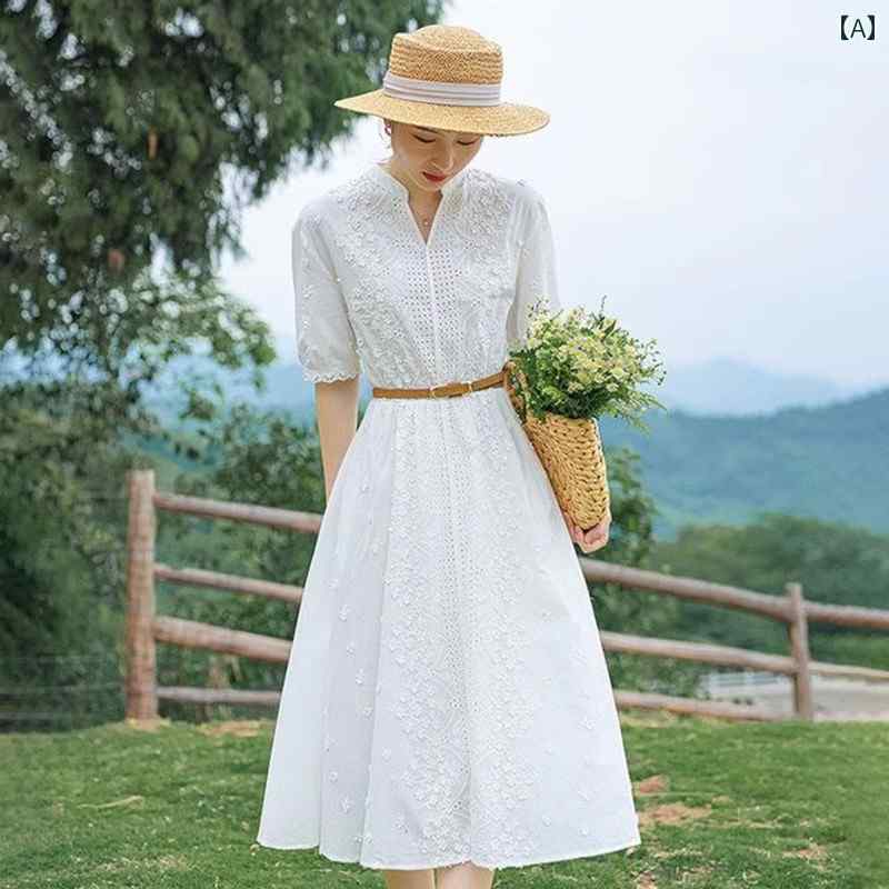 レディース 夏 ワンピース ロング ビーチ リゾート ベルト 女性用 レトロ エレガント ドレス サマードレス ファッション ウエスタンスタイル スリム ウエスト スカート