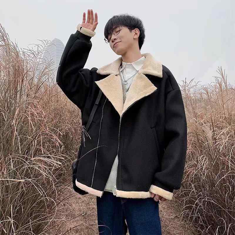 ジャケット メンズ 男性用 秋冬 裏ボア 防寒 暖かい ゆったり アウター 配色 ブルゾン ジャンパー カジュアル スタイル 黒 ブラック 系 キャメル M L XL 2XL