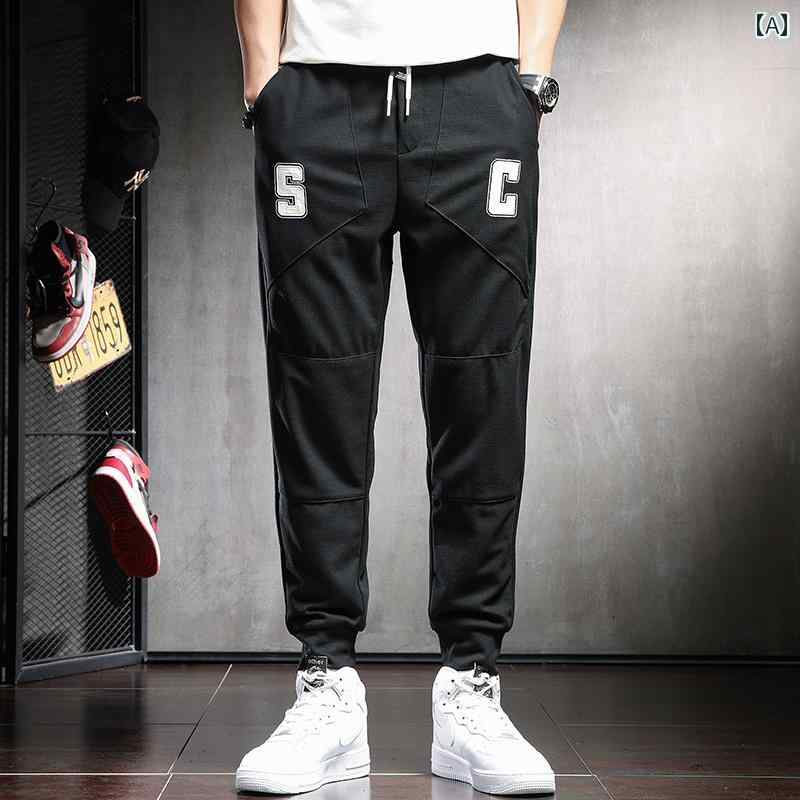 メンズ カジュアル 夏 パンツ アウトドア 男性用 高級感 ニット 薄手 弾性 ウエスト ゆったり スプライス スポーツ レギンス