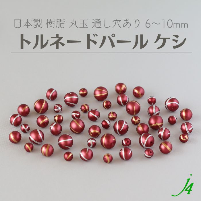 【 トルネード パール ビーズ 6〜10mm レッド j4 】日本製 アクセサリーパーツ 通し穴 通し穴あり 樹脂パール ラインアート プラ プラスチック ハンドメイド 手作り パーツ 業務用 ピアス ネックレス
